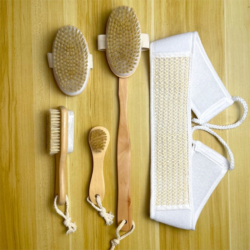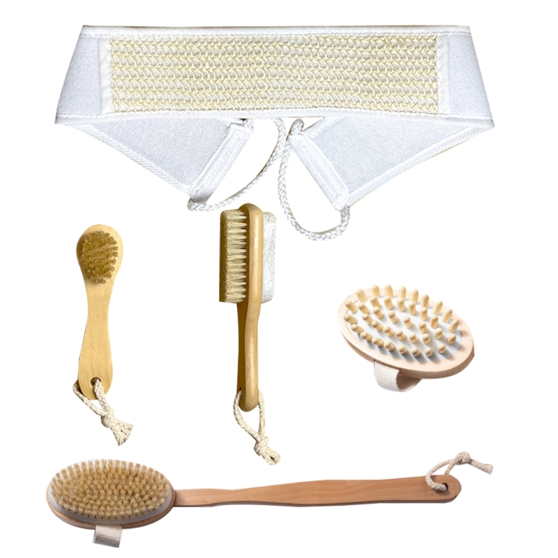 🌿 Was ist es - Entdecken Sie unser 5-teiliges Badbürsten-Set aus hochwertigen Naturborsten. Die Bürsten sind perfekt zum Sanften Peeling und fördern die Durchblutung Ihrer Haut, während sie gleichzeitig ein luxuriöses Massageerlebnis bieten.
