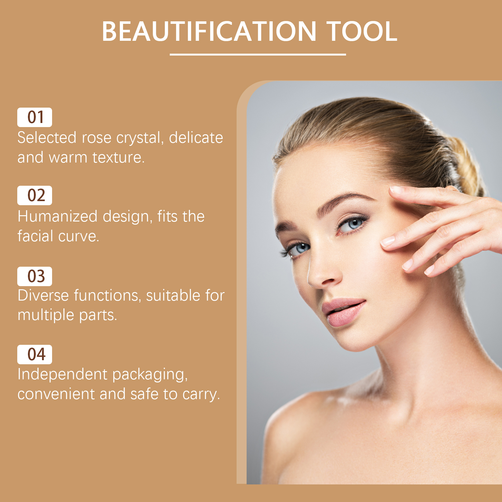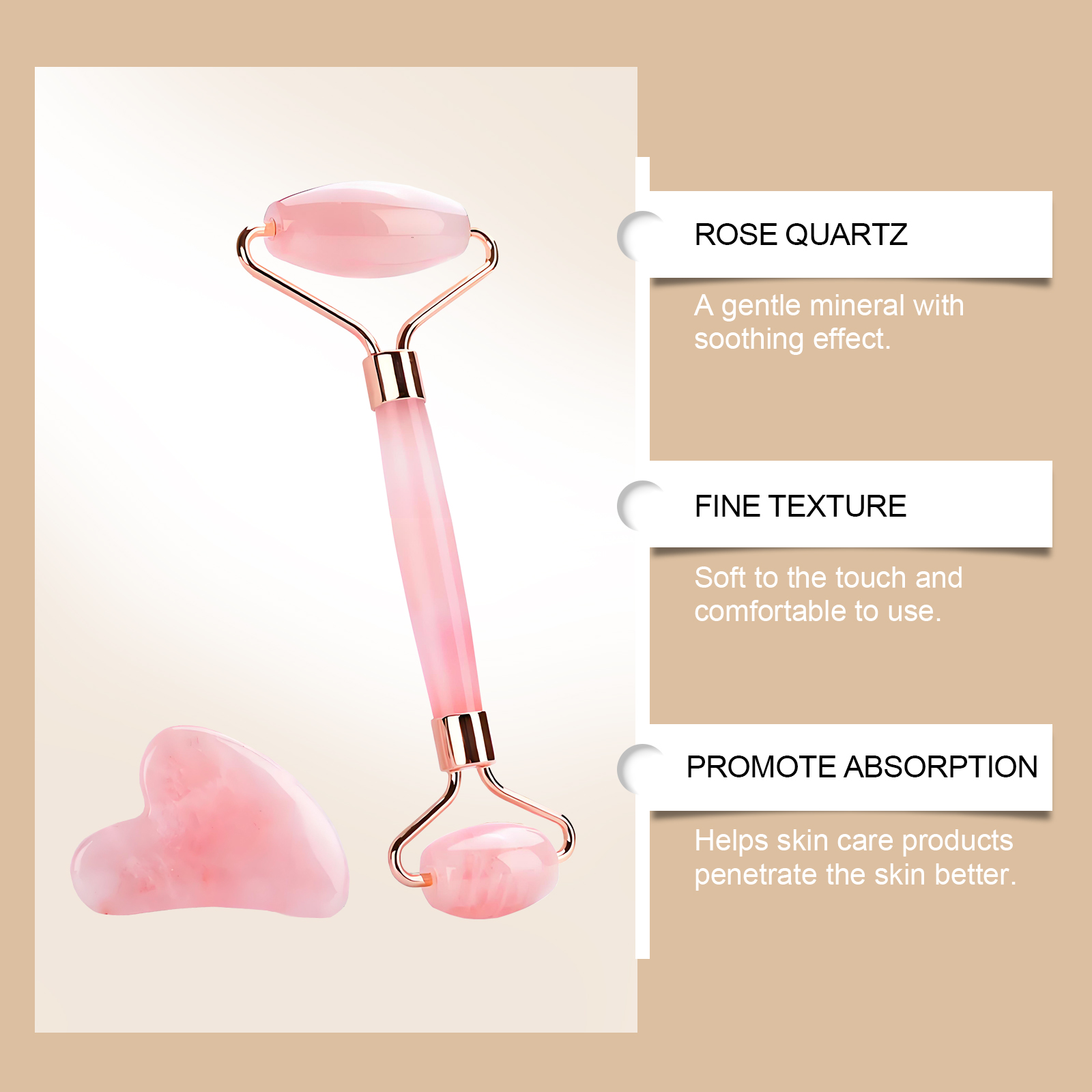 Our Powder Roller massager set contains powder crystals. It can be mildly mineral and has a soothing effect. Soft to touch, comfortable to use; Helps skin care products penetrate the skin better. Its use method is very simple: 1. Please refrigerate the tool before use. 2. Use a mask, facial oil, serum or moisturizer; 3. Use a slow speed and an upward and outward movement of the face roller. 4. Use large and small hair curlers on different parts of your face; 5. Using a scraping massage tool, move upward from the neck, using light to medium pressure; 6. Clean tools after and before each use. Roll gently to relieve tension in your facial muscles. Fits the face shape and improves the facial line.